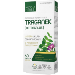 Traganek Medica Herbs to suplement diety zawierający standaryzowany wyciąg z korzenia Astragalus membranaceus, jednej z najbardziej cenionych roślin adaptogennych w tradycyjnych systemach fitoterapii. Preparat został opracowany z myślą o kompleksowym wsparciu odporności, energii i wytrzymałości organizmu.