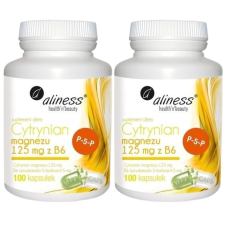 2x Aliness Cytrynian Magnezu 125 mg + B6 (P-5-P) – 100 Vege kaps. | Wsparcie układu nerwowego