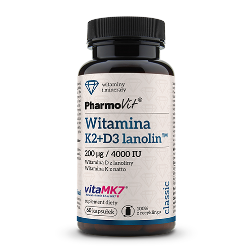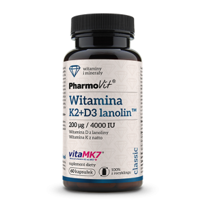 Pharmovit K2 + D3 lanolin™ 200 µg/4000 IU – zdrowe kości i mięśnie – 60 kaps